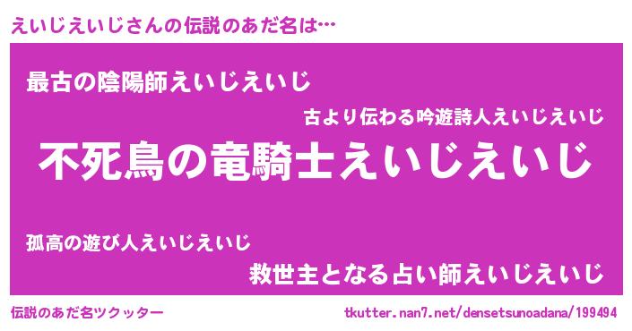 | 胡散臭い通販商品みたいなあだ名 | 『モテモテ間違いなしブレスレット…その名も「えいじえいじ」』 |