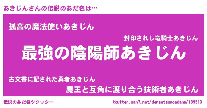 | 意味不明あだ名 | 『あきじんフォーエバー』 |