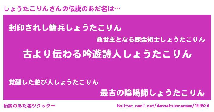 | 意味不明あだ名 | 『永久保存しょうたこりん』 |
