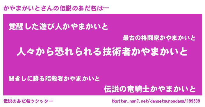 | 胡散臭い通販商品みたいなあだ名 | 『100人中100人が認めたマグネット磁石…その名も「かやまかいと」』 |