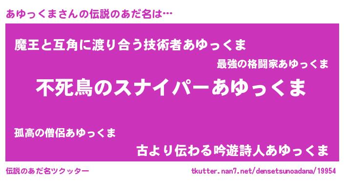 | 意味不明あだ名 | 『住所不定無職あゆっくま(98歳)』 |