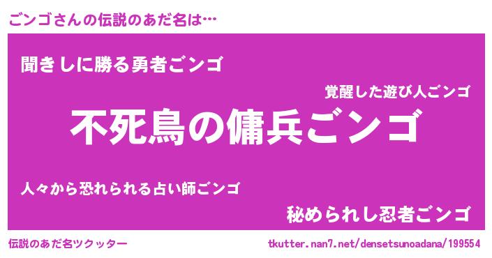 | 男性向けラノベタイトル風あだ名 | 『転生したらごンゴだった件』 |