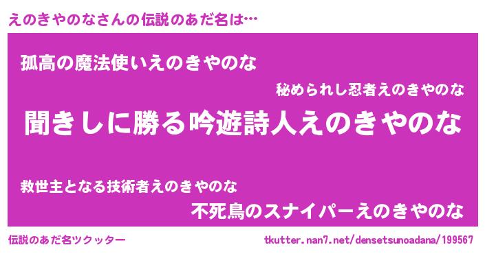 | 男性向けラノベタイトル風あだ名 | 『えのきやのなという概念が存在しない退屈な世界 』 |