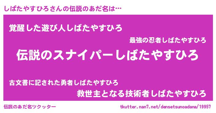 | ヒーロー風カッコイイあだ名 | 『スーパーシバタヤスヒロ』 |