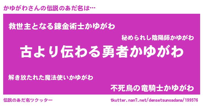 | 意味不明あだ名 | 『住所不定無職かゆがわ(98歳)』 |