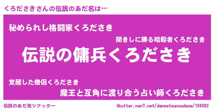 | ファンタジー風あだ名 | 『クロフェル』『エターナルクロダサキー』 |