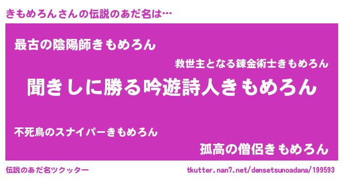 | 意味不明あだ名 | 『永久保存きもめろん』『自称きもめろん』 |