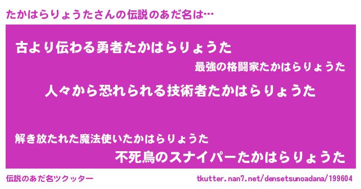 | ヒーロー風カッコイイあだ名 | 『正義の使者たかはらりょうた』 |