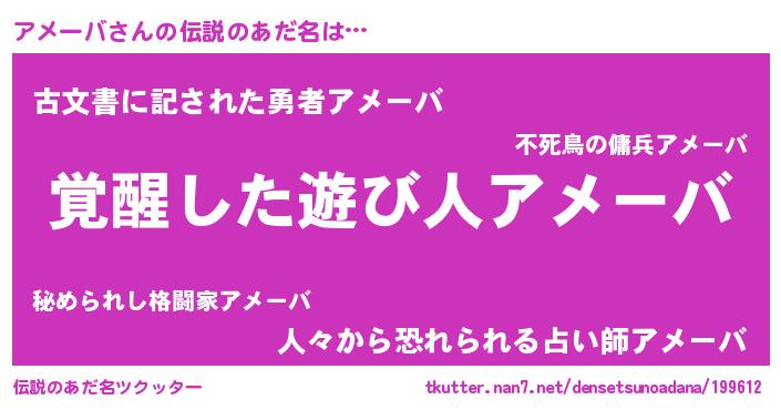| ヒーロー風カッコイイあだ名 | 『天弓騎士アメ』『仮面アメダー』 |
