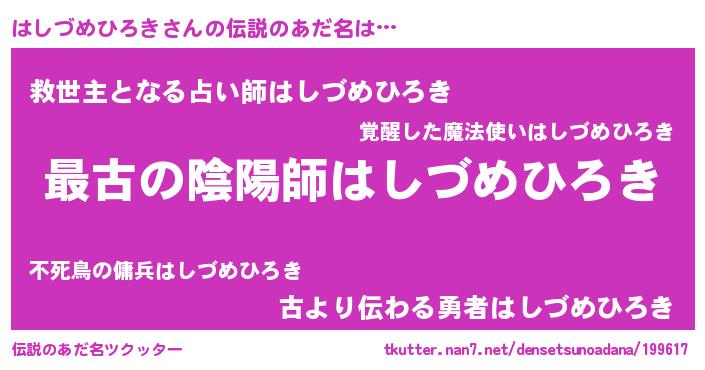 | ファンタジー風あだ名 | 『エターナルハシヅメヒロキー』 |