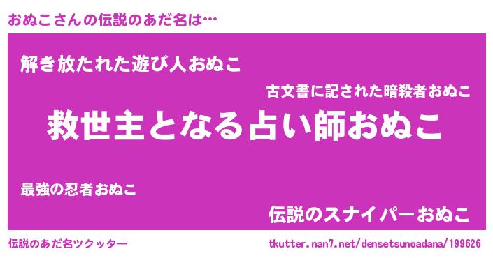 | ヒーロー風カッコイイあだ名 | 『天空の使者おぬこ』『銀牙騎士オヌ』 |