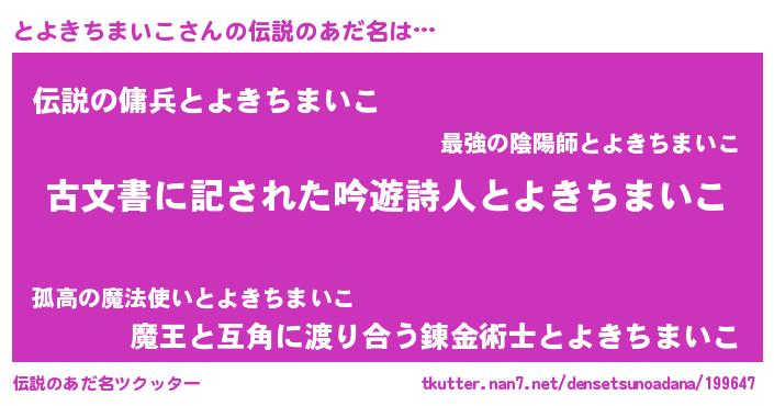 | 欧米人風あだ名 | 『とよきちまいこ・ステッグマイヤー』 |