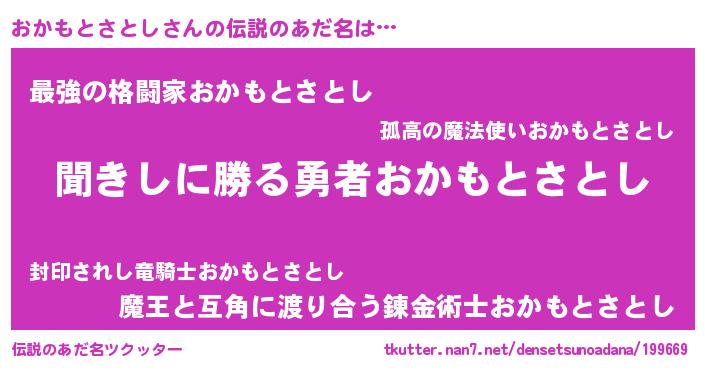 | 女子向けラノベタイトル風あだ名 | 『おかもとさとしアンティーク』 |