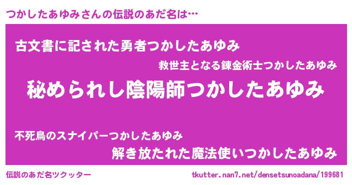 | 意味不明あだ名 | 『住所不定無職つかしたあゆみ(86歳)』 |