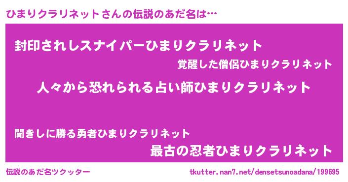 | 男性向けラノベタイトル風あだ名 | 『緋弾のヒマリクラリネット』 |