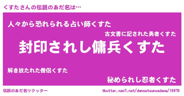 | ヒーロー風カッコイイあだ名 | 『仮面クスダー』『スーパークスタ』 |