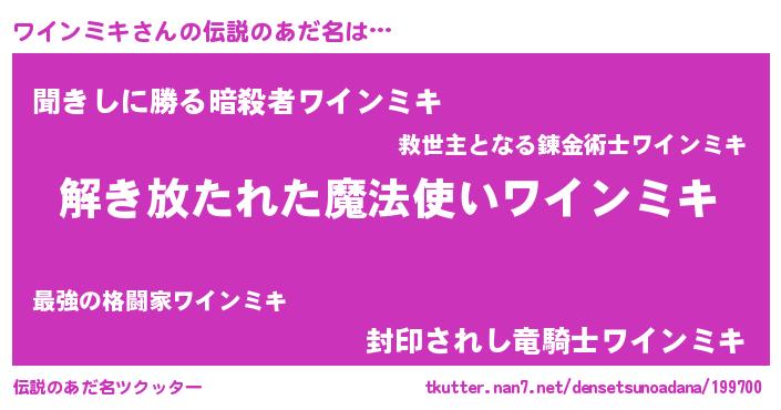 | 意味不明あだ名 | 『住所不定無職ワインミキ(8歳)』 |