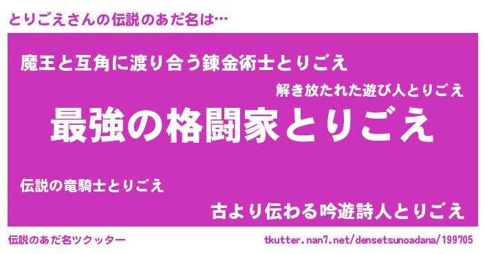 | 意味不明あだ名 | 『とりごえフォーエバー』 |