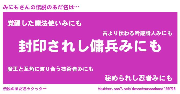 | 意味不明あだ名 | 『自称みにも』『住所不定無職みにも(84歳)』 |