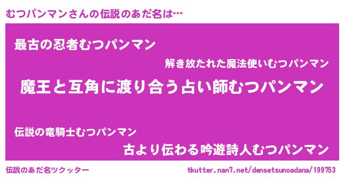 | 胡散臭い通販商品みたいなあだ名 | 『お金では代えられないイリジウム磁石…その名も「むつパンマン」』 |