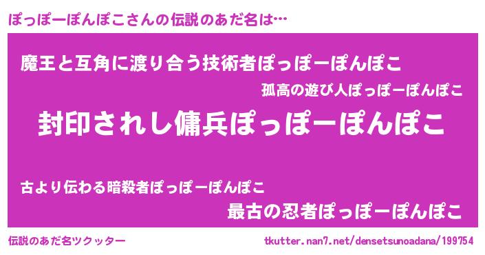 | 男性向けラノベタイトル風あだ名 | 『この素晴らしい世界にぽっぽーぽんぽこを!』 |