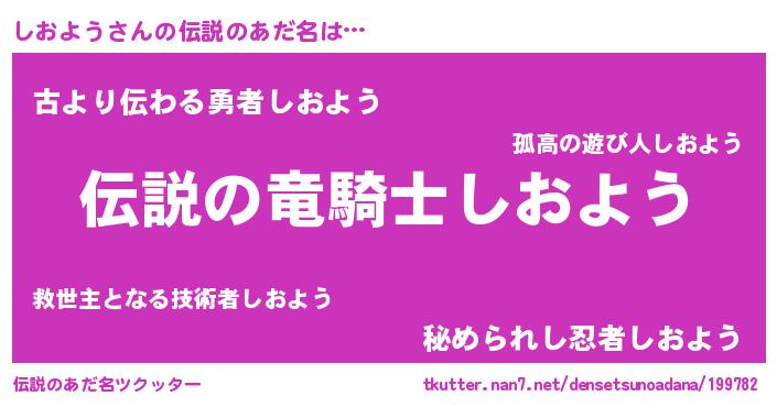 | 男性向けラノベタイトル風あだ名 | 『しおようの憂鬱』 |