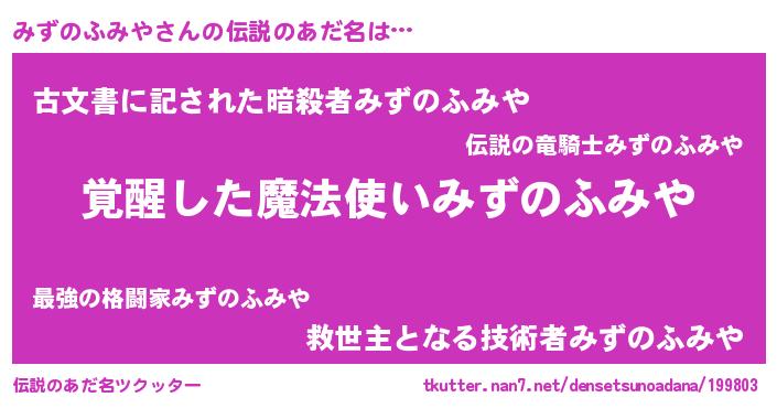 | 意味不明あだ名 | 『とにかく怪しいみずのふみや』 |