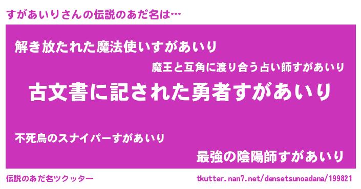 | 意味不明あだ名 | 『永久保存すがあいり』『自称すがあいり』 |