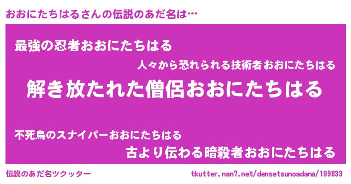 | 意味不明あだ名 | 『とにかく怪しいおおにたちはる』 |