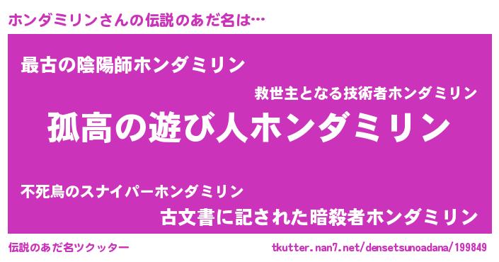 | ポケモン風あだ名 | 『ヒホンダミリン』『ホンダダネ』 |