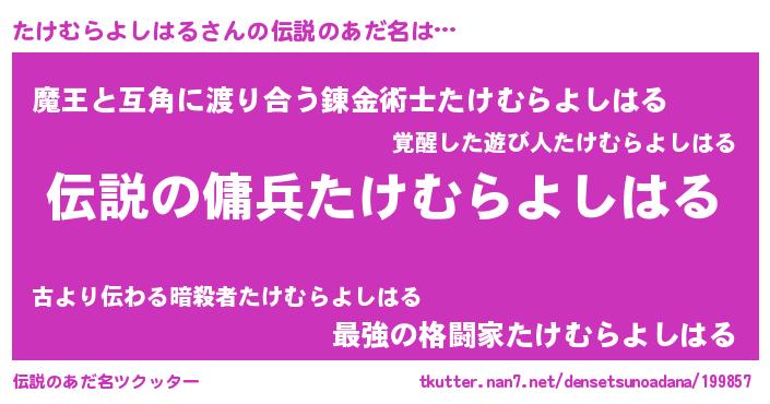 | 胡散臭い通販商品みたいなあだ名 | 『必ず成功する水晶球…その名も「たけむらよしはる」』 |