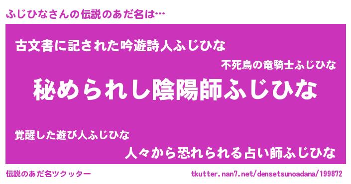 | ファンタジー風あだ名 | 『エターナルフジヒナー』『ゼフジトゥ』 |