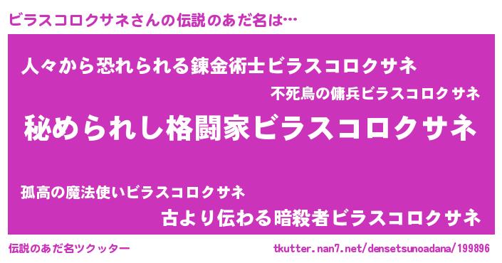 | ポケモン風あだ名 | 『ビラスダネ』『ビックウザ』 |