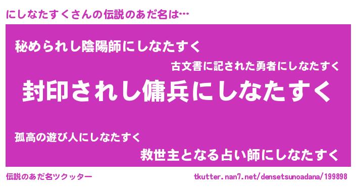 | 胡散臭い通販商品みたいなあだ名 | 『億万長者になれる水晶球…その名も「にしなたすく」』 |