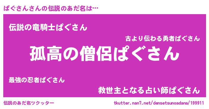 | 男性向けラノベタイトル風あだ名 | 『パグサンスレイヤー』 |