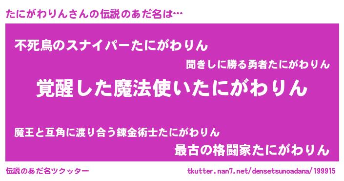 | 胡散臭い通販商品みたいなあだ名 | 『全米が絶賛したサプリメント…その名も「たにがわりん」』 |