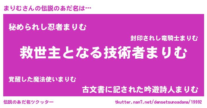 | 意味不明あだ名 | 『住所不定無職まりむ(8歳)』『自称まりむ』 |