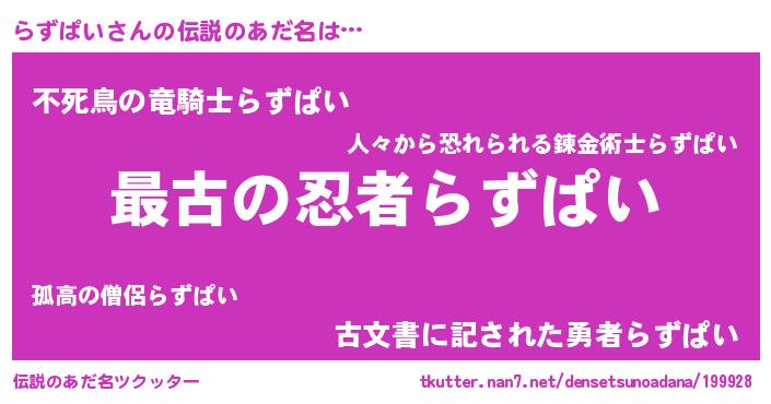 | 意味不明あだ名 | 『らずぱいフォーエバー』『自称らずぱい』 |