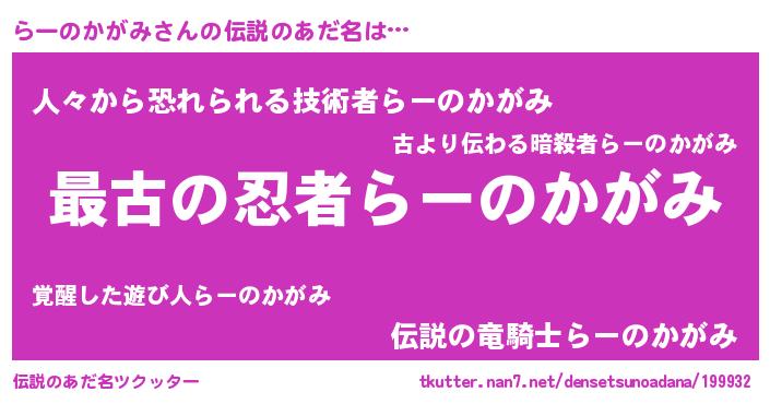| 意味不明あだ名 | 『らーのかがみフォーエバー』 |