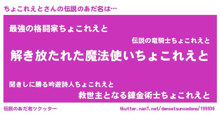 | ポケモン風あだ名 | 『ヒチョコレエト』『チョセウス』 |