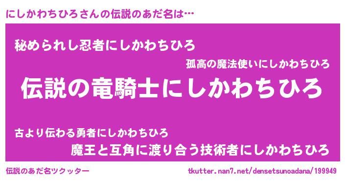 | 男性向けラノベタイトル風あだ名 | 『にしかわちひろの憂鬱』 |