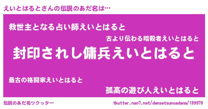 | 胡散臭い通販商品みたいなあだ名 | 『億万長者になれる水晶球…その名も「えいとはると」』 |