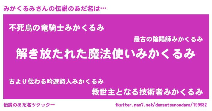 ヒーロー風カッコイイあだ名 | 『銀牙騎士ミカ』『スーパーミカクルミ』 |