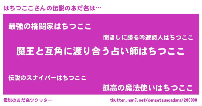 | ヒーロー風カッコイイあだ名 | 『愛の使者はちつここ』『黄金騎士ハチ』 |