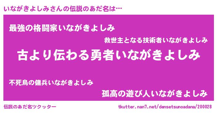 | 意味不明あだ名 | 『永久保存いながきよしみ』 |