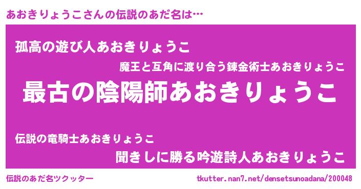 | 意味不明あだ名 | 『もやし科あおきりょうこ属』 |
