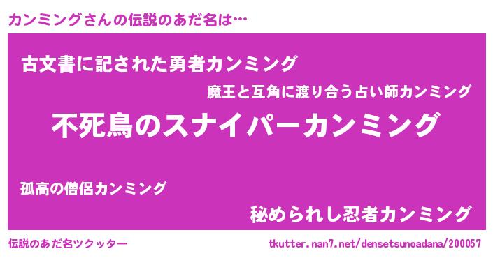 | 胡散臭い通販商品みたいなあだ名 | 『モテモテ間違いなし霊験あらたかなお札…その名も「カンミング」』 |