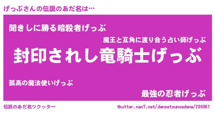 | ヘコむあだ名 | 『げっふぇ~』『げっぶ(小並感)』 |
