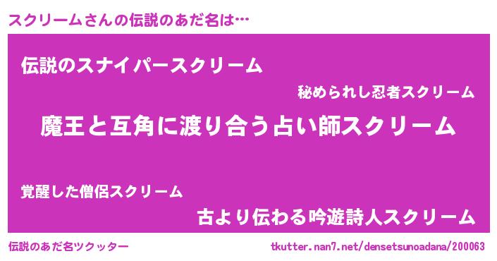 | ヒーロー風カッコイイあだ名 | 『仮面スクダー』『友情の使者スクリーム』 |