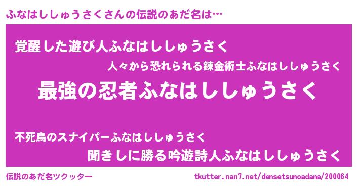 | ヒーロー風カッコイイあだ名 | 『ウルトラふなはししゅうさくマン』 |